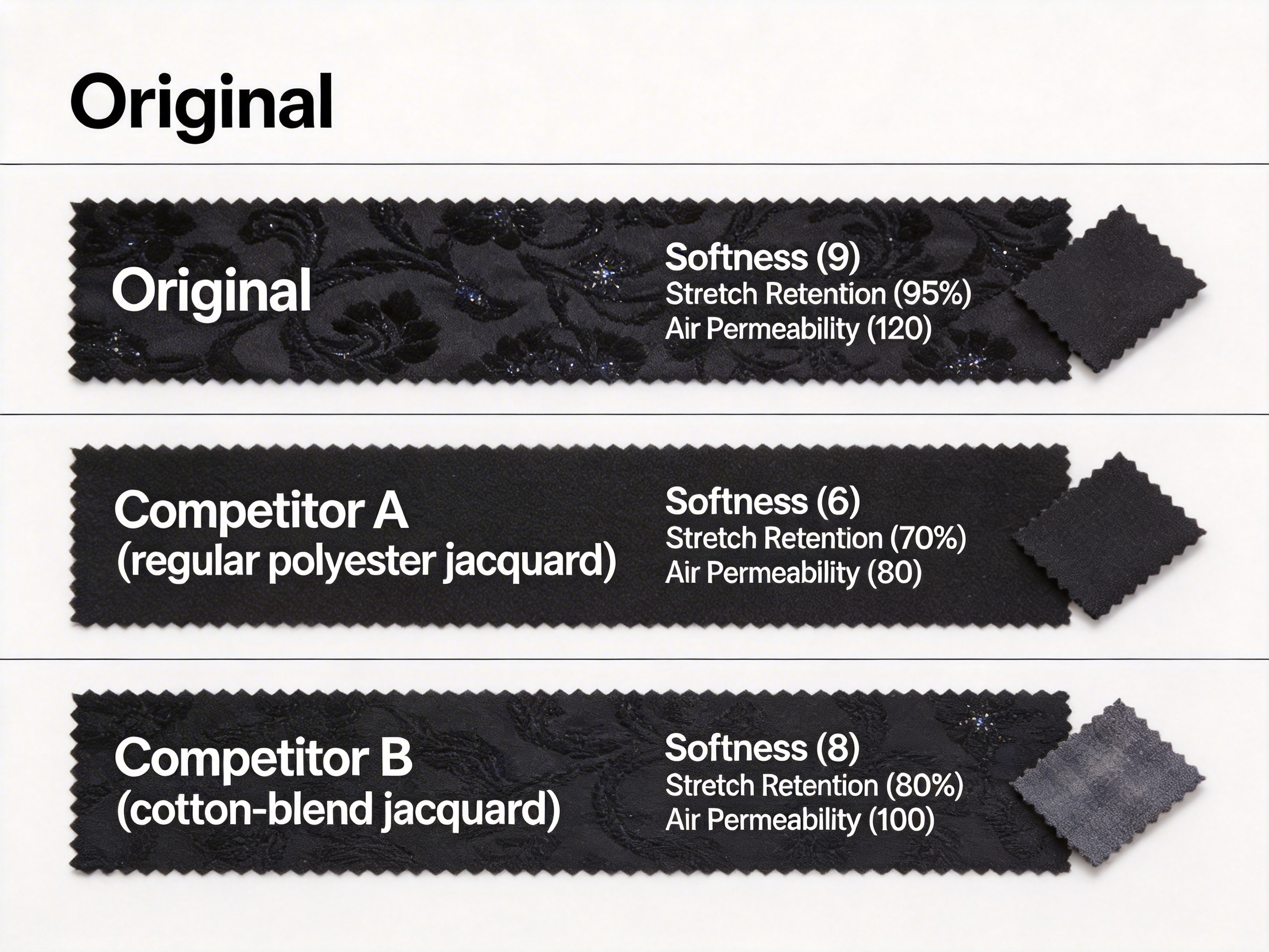 | Feature | Black Slight Intermingled DTY Jacquard Fabric | Regular Polyester Jacquard (Competitor A) | Cotton-Blend Jacquard (Competitor B) |