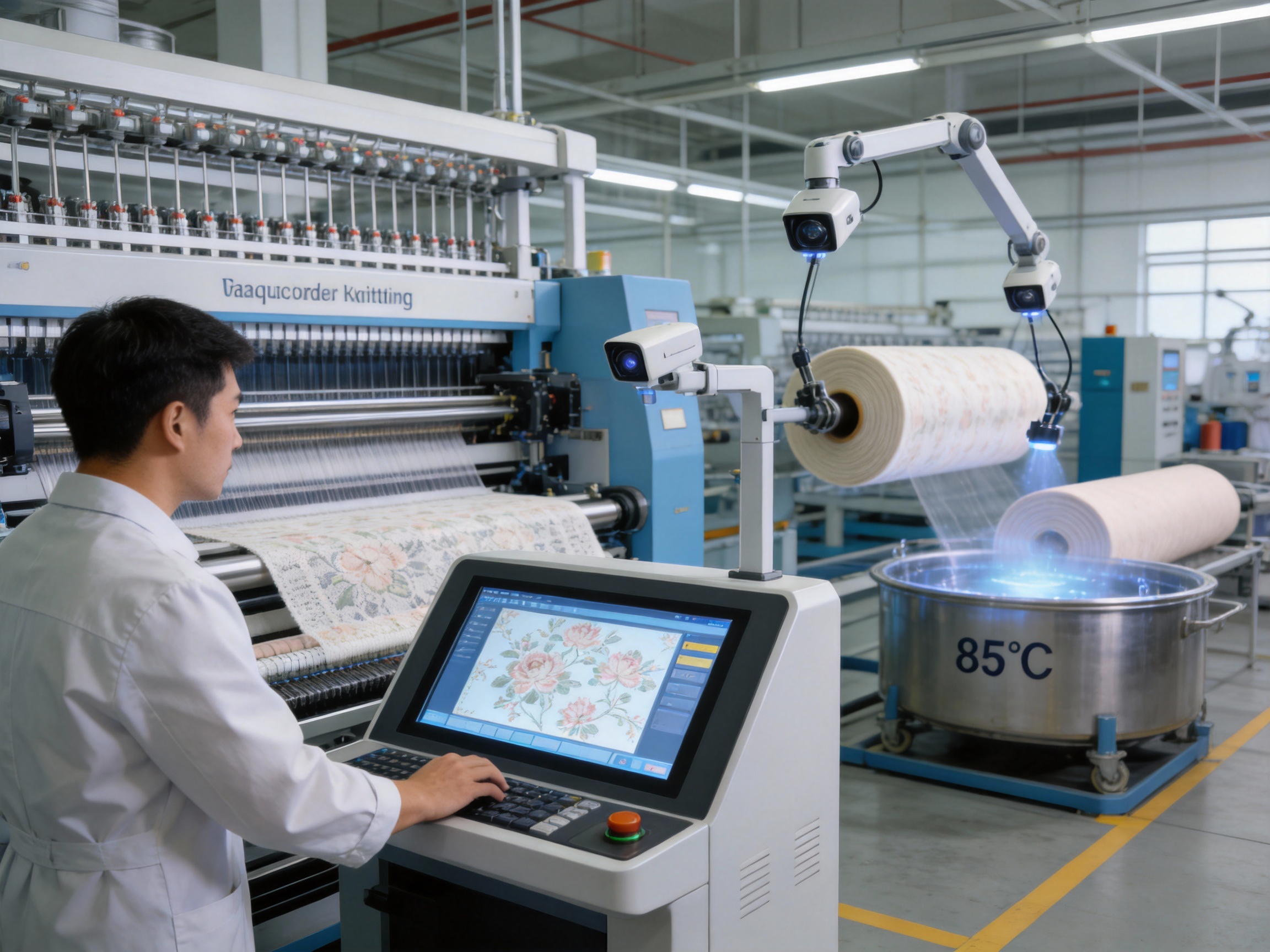 - During dyeing: Sensors monitor dye temperature, concentration, and penetration to ensure uniform color across the entire roll.