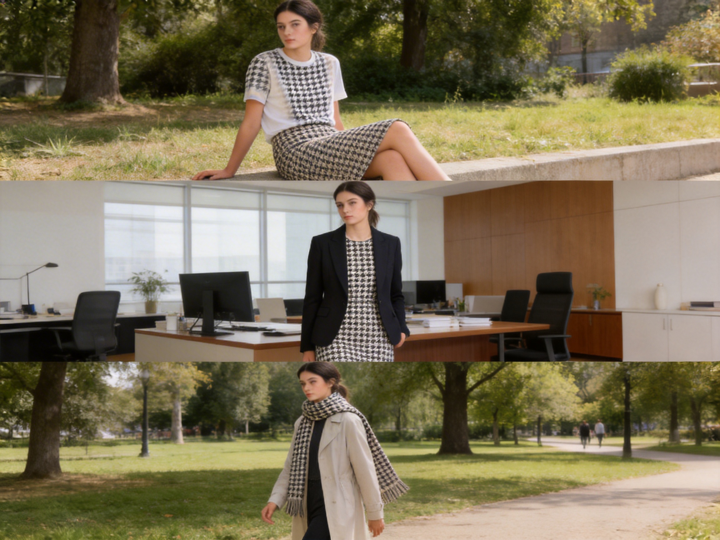 Accessories like scarves, ties, handbags, and belts use the fabric’s small houndstooth pattern to add a subtle yet stylish touch. Scarves made from the fabric are soft and warm, while ties and handbags are durable and eye-catching. The fabric’s versatility makes it a popular choice for accessory designers looking to add a classic pattern to their collections.