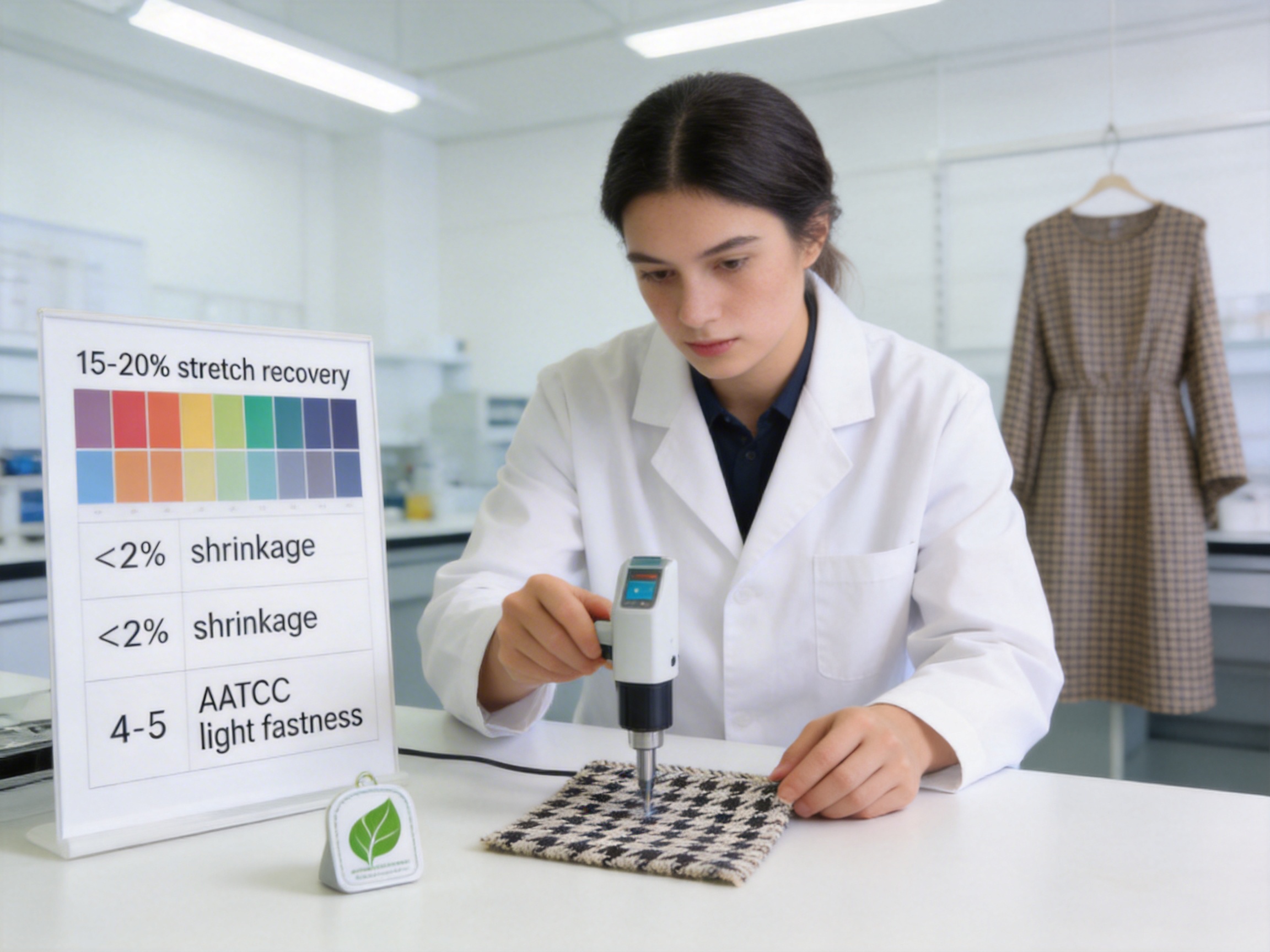 - Softening and Calendering: Eco-friendly softeners are applied to enhance the fabric’s handfeel, while light calendering gives it a subtle sheen that highlights the houndstooth pattern. This process does not compromise the fabric’s breathability or stretch.