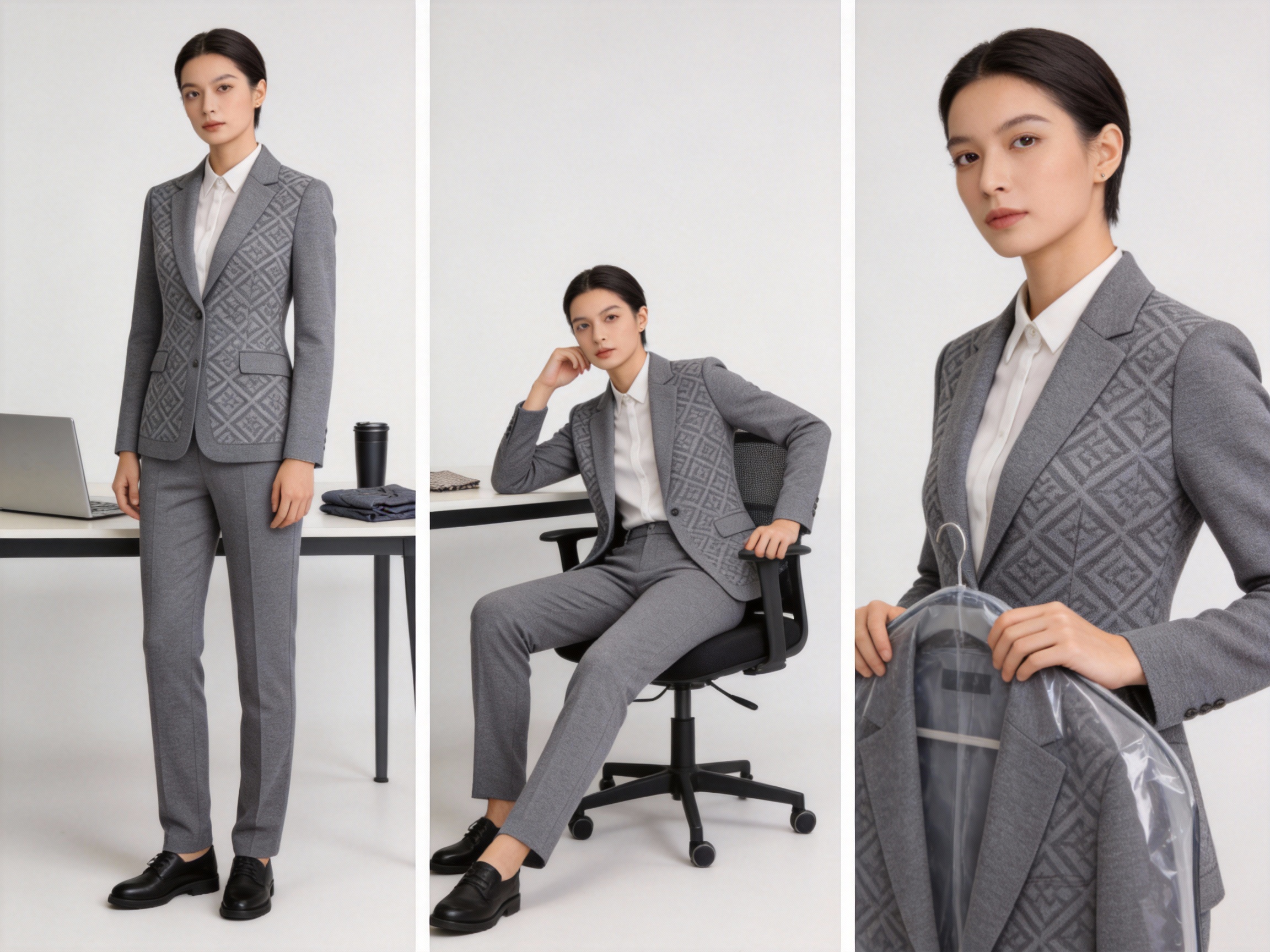 Consider a marketing executive who travels weekly for client meetings. A traditional wool suit would require ironing after every flight, and the lack of stretch would make it uncomfortable during long car rides or flights. A basic knit suit, while stretchy, would lose its shape by the end of the day and look unprofessional. The premium double-knit jacquard solves both problems: