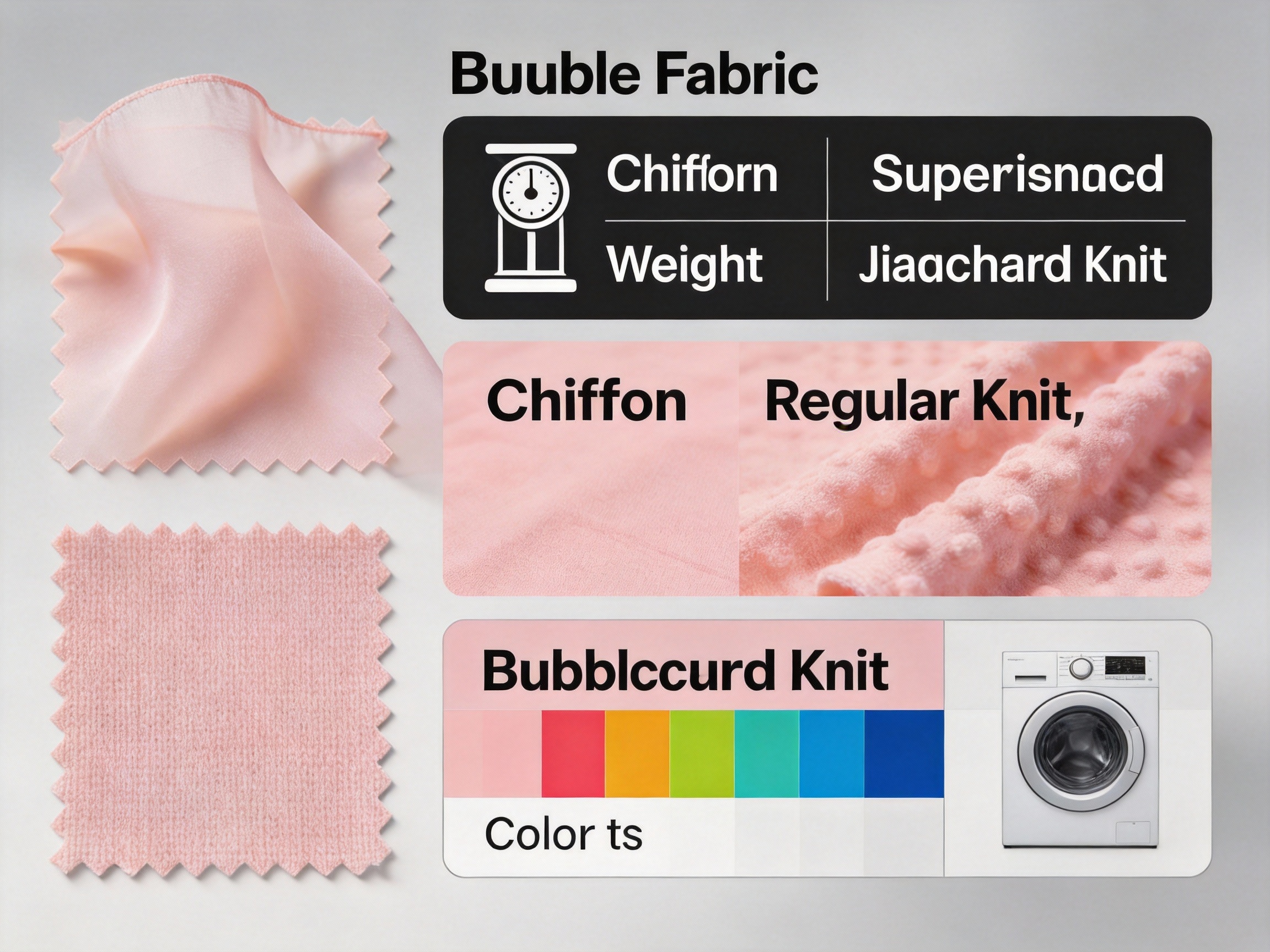 Unlike chiffon (limited to 30–50 denier lightweight variants) or regular knit fabrics (which lack structure), bubble fabric offers a flexible weight range: