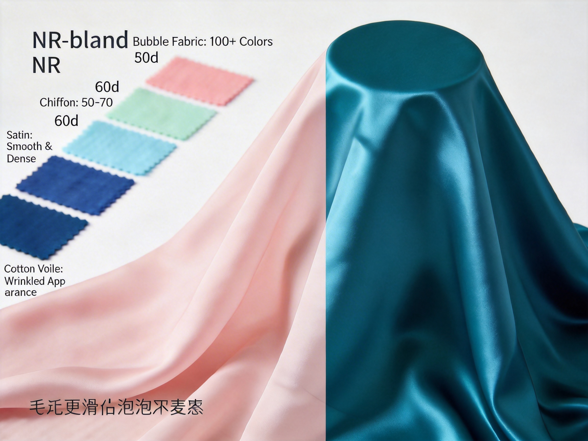 To further illustrate Bubble Fabric’s advantages, the table below compares it to three common competing textiles: chiffon, satin, and cotton voile.