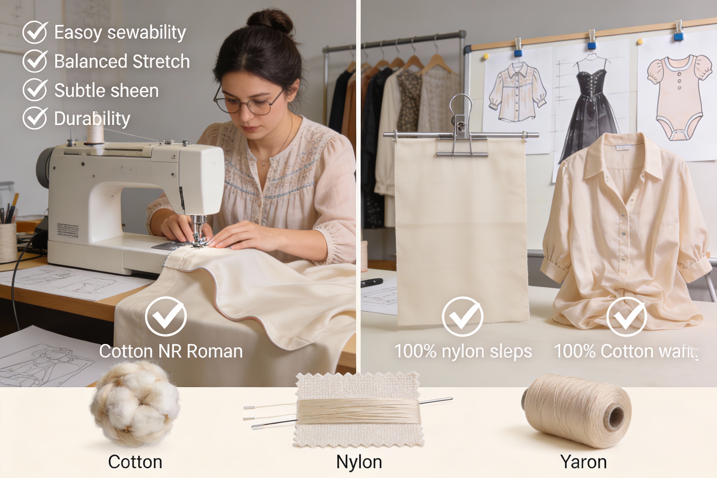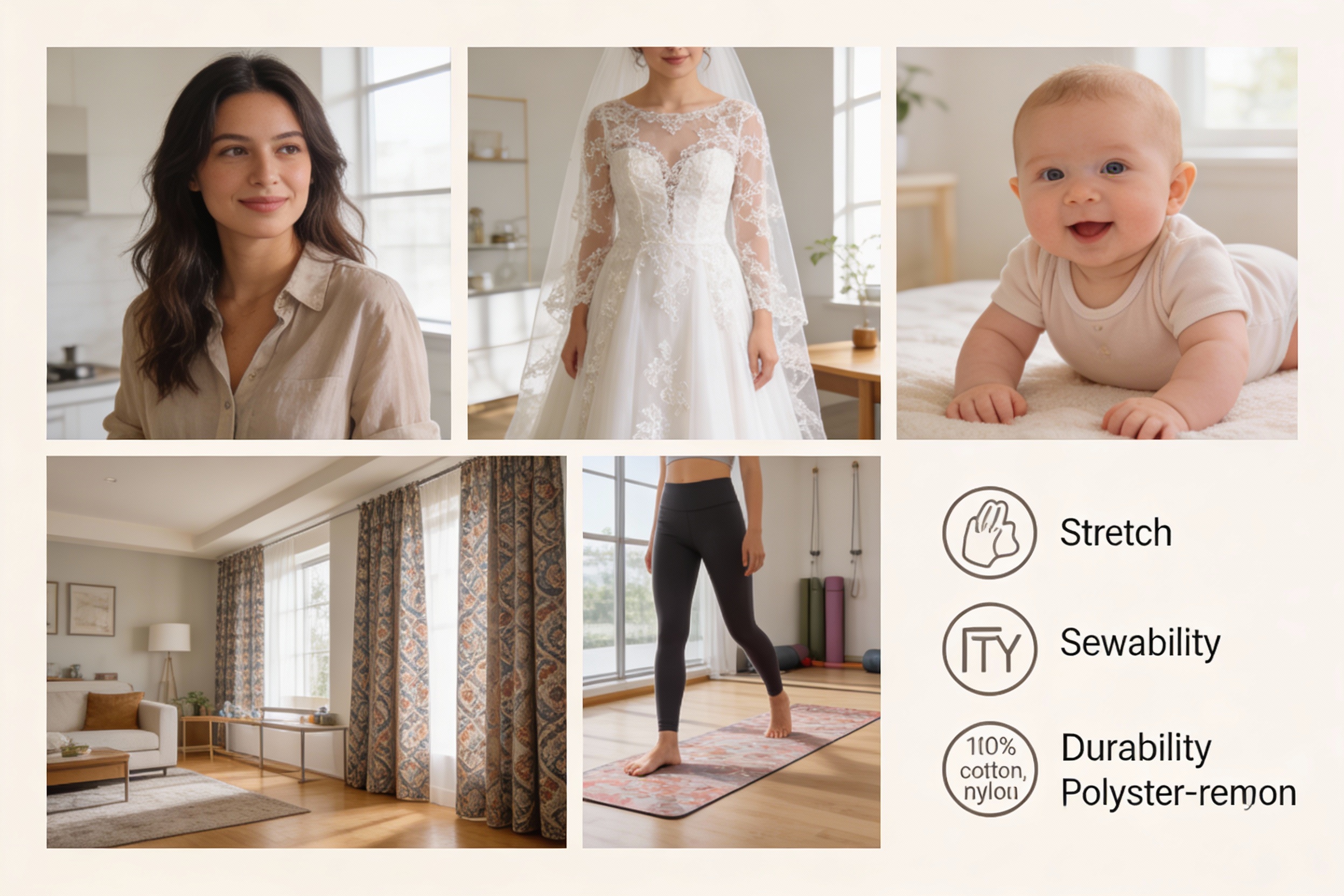| Common Uses | Dresses, blouses, baby clothes, overlays | T-shirts, jeans, bed sheets | Activewear, stockings, raincoats | Suits, dresses, curtains |