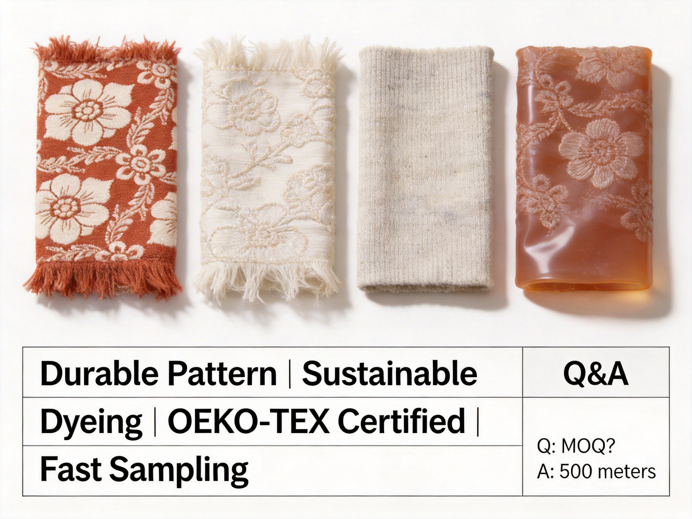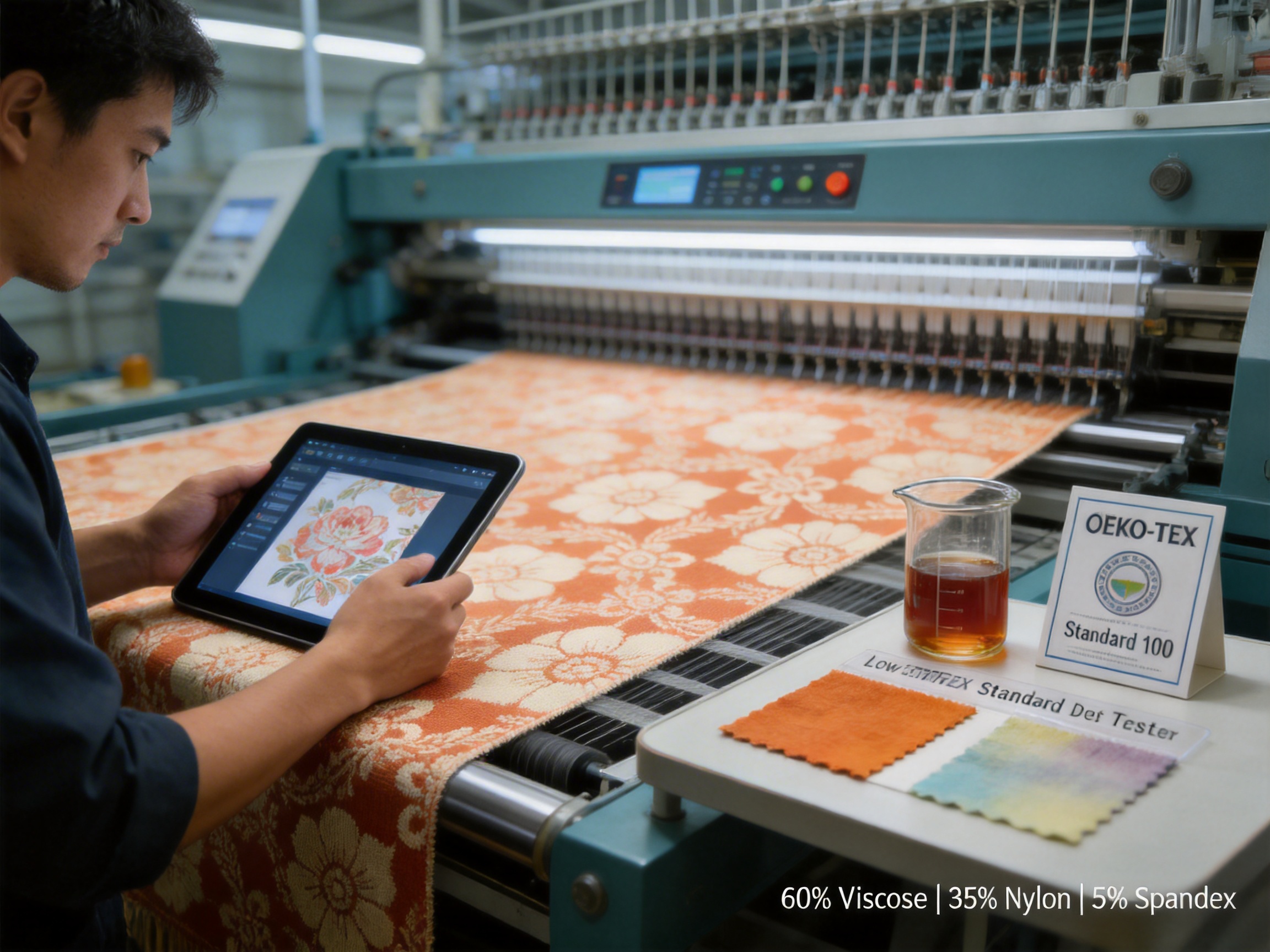 | Polyester Jacquard Fabric | 100% Polyester | 250-300g/m² | Durable, colorfast | Low cost, easy to clean | Stiff drape, non-breathable, plastic-like feel, not OEKO-TEX certified |