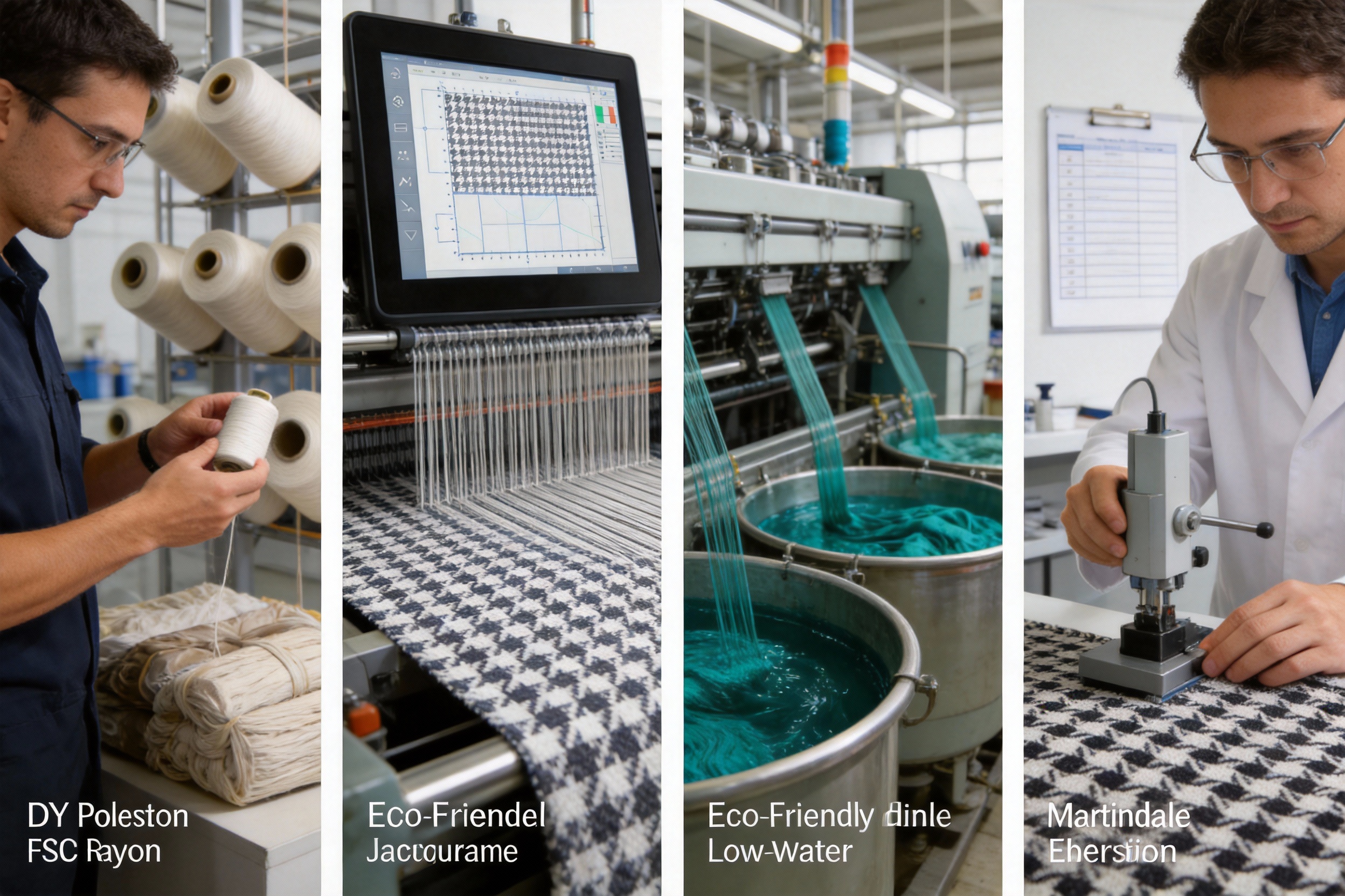 The superior quality of this houndstooth jacquard fabric is the result of a rigorous, integrated manufacturing process that covers every stage from fiber selection to final finishing. Below is a detailed breakdown of the key processes: