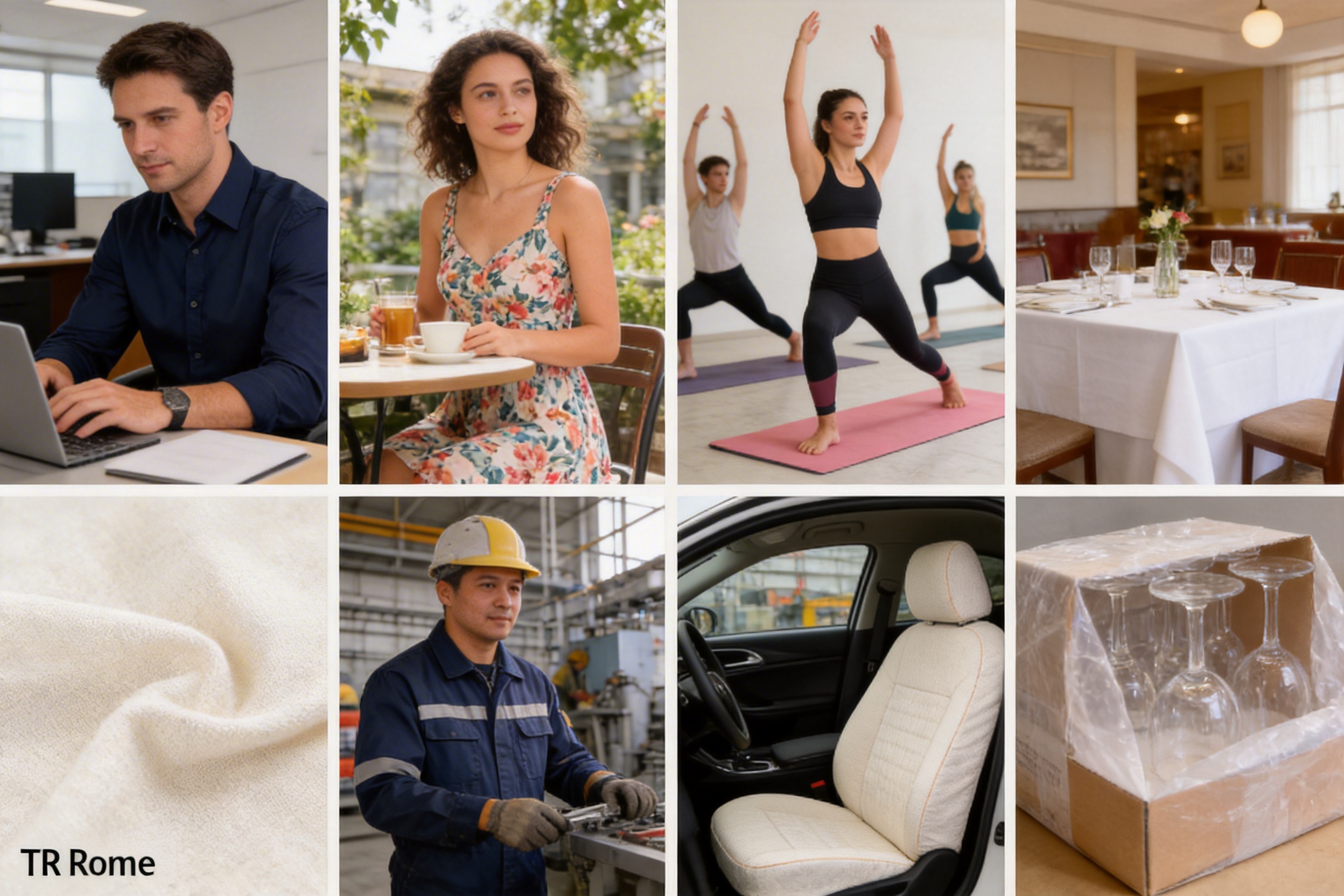 - Work Uniforms: Factory workers, hospitality staff, and healthcare workers rely on TR Rome Fabric uniforms for their durability, easy cleaning, and comfort. The fabric’s stain-resistant properties (optional finishing) make it ideal for industrial environments. - Hospitality Textiles: Tablecloths, napkins, and bed linens made from TR Rome Fabric are durable, dyeable, and easy to maintain—reducing replacement costs for hotels and restaurants. - Automotive Upholstery: Seat covers and interior fabrics made from TR Rome Fabric are lightweight, durable, and easy to clean—making them a cost-effective choice for car manufacturers. - Packaging: Wrapping for delicate items (glassware, electronics) made from TR Rome Fabric is soft yet strong—protecting items from scratches and damage during shipping.