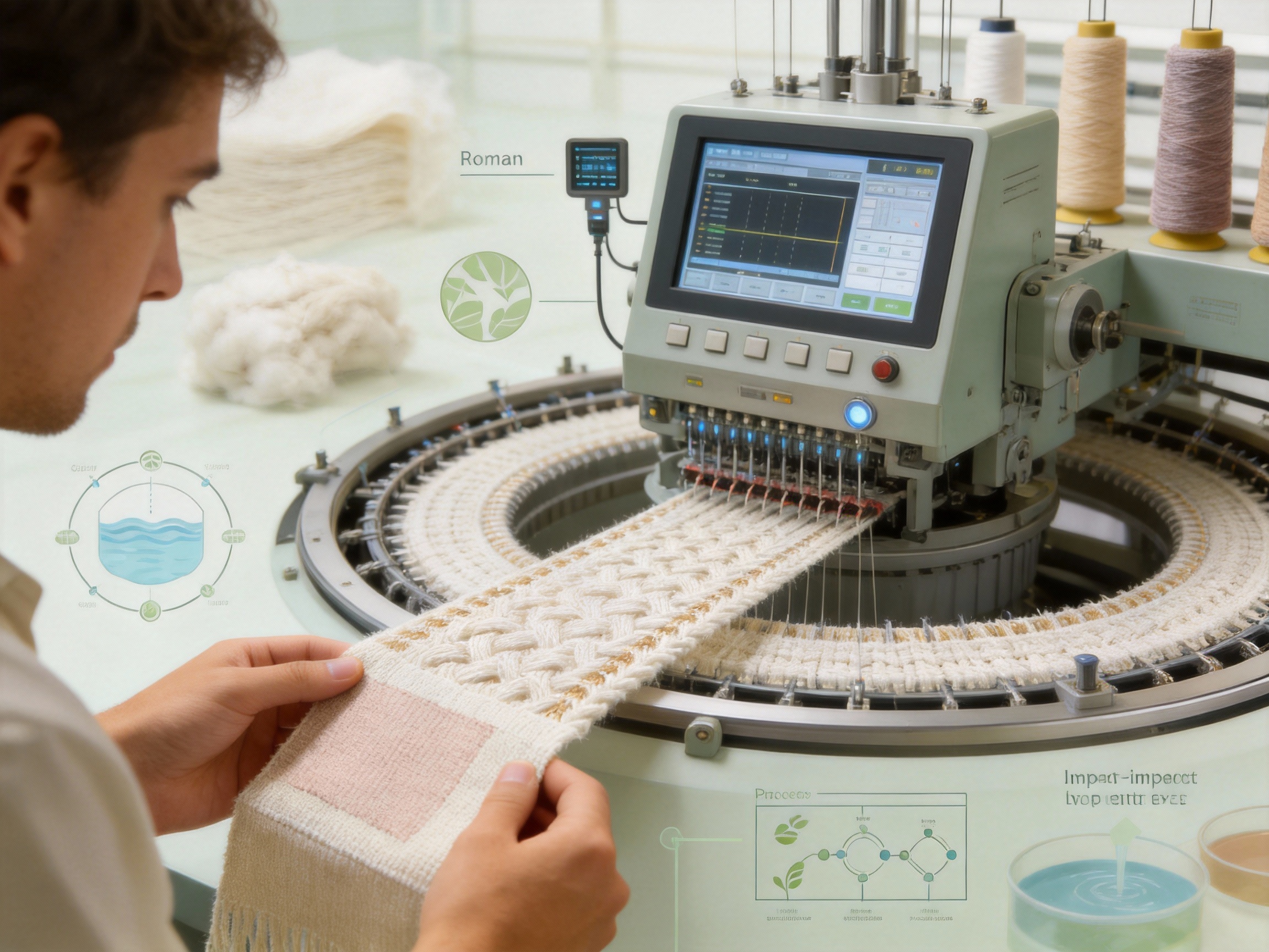 The blended yarns are then fed into computerized circular knitting machines that produce the Roman knit structure. Key features of the knitting process include: