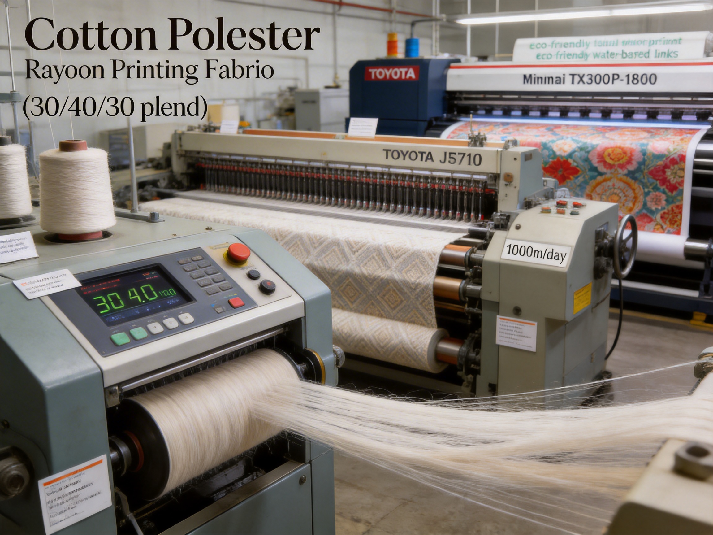 Cotton Polyester Rayon Printing Fabric is a precision-engineered blend of three core fibers—cotton, polyester, and rayon—each contributing distinct functional and aesthetic attributes to create a fabric that outperforms single-fiber or two-fiber alternatives. While ratios vary by application, a standard formulation is 30% cotton, 40% polyester, and 30% rayon, striking an optimal balance between natural comfort, synthetic durability, and semi-synthetic luxury: