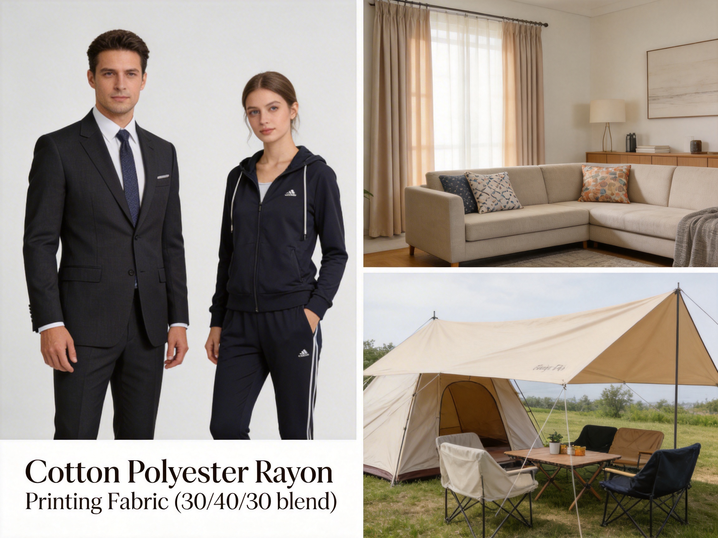 Business wear is a major market: the fabric’s wool-like drape, durability, and shape retention make it an affordable alternative to pure wool suits (which cost $25/yard vs. $8.50/yard for the blend). A leading menswear brand uses it for TR (Terylene-Rayon) suiting, which is lighter, more breathable, and machine-washable. For women’s fashion, the fabric’s printability allows for custom floral or geometric patterns in dresses and blouses. Casual wear brands use it for activewear, as it combines comfort with moisture-wicking performance.