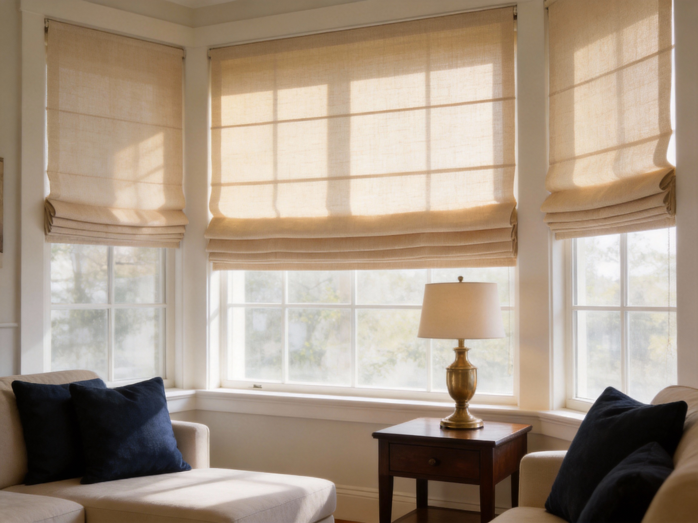 - Flat Roman Shades: Smooth, minimalist look—ideal for modern kitchens or offices;