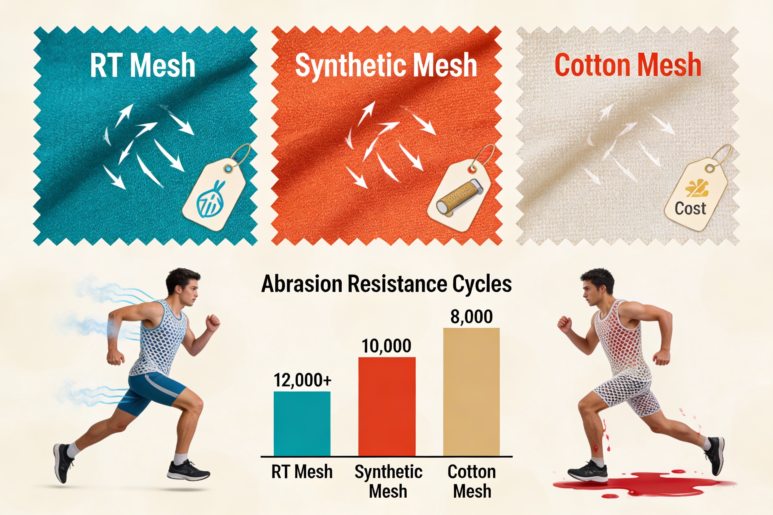 | Property | RT Mesh Fabric | Synthetic Mesh (Polyester/Nylon) | Cotton Mesh |