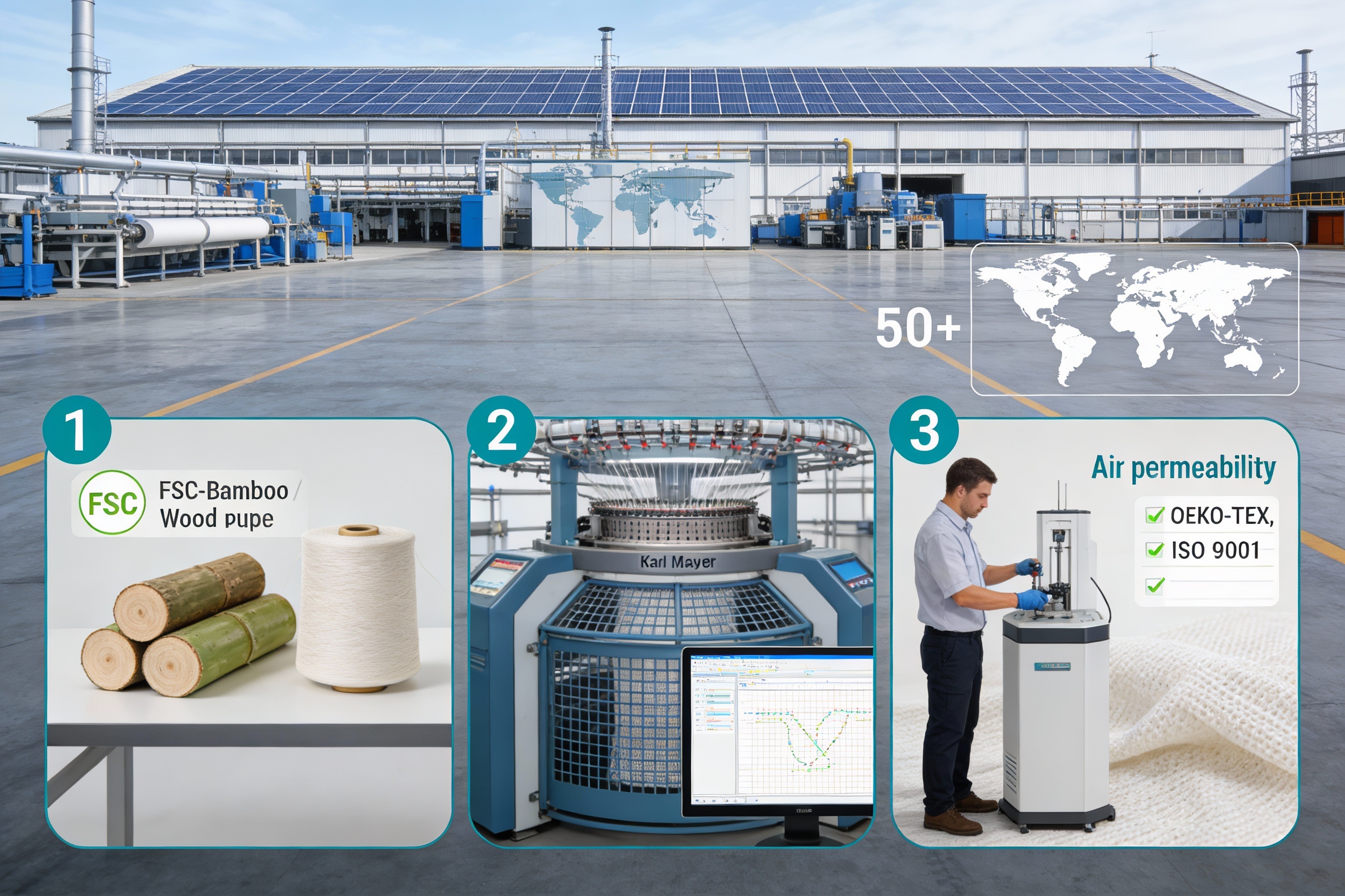 One of the key strengths of the manufacturer is its integrated supply chain, which covers every stage of production from yarn manufacturing to finished fabric: - Yarn Production: The company produces its own DTY (Drawn Textured Yarn) polyester yarn, with an annual production capacity of 15,000 tons. This ensures control over the quality of raw materials used in blends and reduces reliance on third-party suppliers. - Fabric Manufacturing: In-house knitting and finishing facilities cover 18,000 square meters, with 50+ circular knitting machines and 20+ finishing lines. The facility is equipped with automated systems to improve efficiency and reduce waste. - Distribution: The company’s global distribution network spans 50+ countries, with warehouses in China, the United States, and Germany. This enables fast delivery times and reduces shipping costs for international customers.